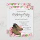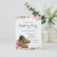 A mulher está caminhando convite de aniversário com rosas cor-de-rosa e um par de botas marrons. Este convite de aniversário de caminhada é facilmente personalizado para o seu evento, simplesmente adicionando os seus detalhes no estilo de letra, cor e texto da sua escolha.