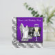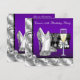 Calçados de salto alto, roxo e preto, convite de aniversário de vidro de bolsa e champanhe. Este belo convite de aniversário roxo das mulheres é facilmente personalizado para o seu evento adicionando detalhes do evento, estilo de fonte, tamanho de fonte e cor e texto. Observe que todos os adesivos, cartões e designs de convite que você encontrará no Zazzle são gráficos impressos sem joias reais, arcos, levantados, gravados, ou peças ou peças adicionadas.