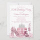 As mulheres convidam bolsa mensageifesta de aniversario elegante com calçados bonito cor-de-rosa alto, garrafa de perfume, vidro de champanhe, coroa e presentes num lindo fundo rosa e branco. Este convite de aniversário cor-de-rosa das mulheres é facilmente personalizado para o seu evento simplesmente adicionando os seus detalhes de eventos.