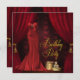 Elegante rubi vermelho e convite de aniversário de Deco de Arte dourada. Este convite de aniversário vermelho e dourado de uma linda mulher apresenta um lindo vestido vermelho e cortinas reais e douradas. Você pode personalizar facilmente o convite de aniversário vermelho e dourado rubi simplesmente escolhendo o botão "Personalizar!" para começar a adicionar detalhes do evento, estilo da fonte, tamanho da fonte e cor e texto. Observe que todos os adesivos, cartões e designs de convite que você encontrará no Zazzle são gráficos impressos sem joias reais, arcos, levantados, gravados, ou peças ou peças adicionadas.