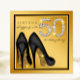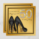 Grande calçado preto e ouro de salto alto, surpresas do 50º convite de aniversário. Este elegante convite de aniversário preto-e-ouro surpresa 50º é facilmente personalizado para o seu evento.