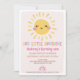 Multicolor Nosso Pequeno Convite Para primeiro aniversario Sunshine Encaixe nosso convite para primeiro aniversario de sol para uma menina apresentando um sol fofo, texto multicolorido e arco-íris em um fundo rosa. Este convite de aniversário, temido pelo sol, poderia ser usado para qualquer idade.
