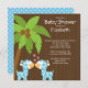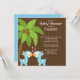 Comece-o chá de fraldas gêmeo fora do direito com nosso convite múltiplo bonito do chá de fraldas dos girafas apenas para meninos gêmeos! Girafas gêmeos doces do menino do girafa do convite das características azuis & brancas do nosso safari de selva com uma palmeira & as borboletas ajustadas em um fundo marrom moderno. A parte traseira de nossos convites múltiplos do chá de fraldas do girafa gêmeo tem bolinhas azuis de coordenação para trás. Visite-nos em www.celebrateitinvites.com para o obrigado de harmonização do girafa você cartões, selos postais & etiquetas de nota. design do ©Zenware