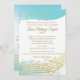 Design brilhante azul e branco com notas de música ouro e Estrela de David, convite de Bat Mitzvah. Personalize o texto como preferido.
