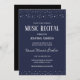 Os realces do confete de brilho dourado e maravilhoso na borda superior e inferior. Notas falsas de música prateada no topo do convite. Convites de prata e azul elegantes e música simples. Excelente para piano, flauta, clarinete, trompete, violino, guitarra ou vários considerandos de música para estudantes. Genérica para vários tipos de instrumentos.
