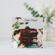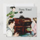 Convites com uma ilustração da década de 1950 de três pessoas que ouvem registros num leitor de discos antigos. Personalize-os com o seu próprio texto. Legal!