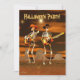 Engraçado e único convite para o Halloween com dois esqueletos tocando guitarras.