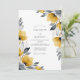 This design features vibrant mustard yellow watercolor flowers paired with cool charcoal gray foliage. The hand-painted botanical elements, including poppies and anemones, evoke a sophisticated and modern mood. A crisp white background allows the bold floral details to stand out beautifully for a seasonal event.