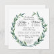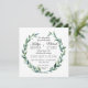 NOTA: OS CONVITES QUADRADOS EXIGEM PLACAS RSVP DE 1/2" X 5" DE TAMANHO - o tamanho maior não será ajustado nos envelopes. As folhas de louros pintadas a aquarelas em tons suaves de verde são entrelaçadas como seus corações - e suas famílias. Use para um cenário rústico de celeiro, um quintal debaixo das árvores, ou um local de fazenda ou parque. Um conjunto completo de convites para o casamento e uma coleção estão disponíveis para combinar.