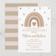 Celebrate your special announcement with this elegant muted rainbow gender reveal invitation, designed with soft, modern tones for a stylish and contemporary look. The subtle rainbow palette creates a warm and joyful atmosphere, perfect for a boho, minimalist, or neutral-themed baby reveal party.