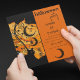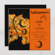Convite de festa Vibrant Halloween onde o lado direito dos recursos de convite e o fundo laranja onde todas as informações de seu partido podem ser personalizadas. O lado esquerdo do convite da festa de Halloween apresenta elementos temáticos Halloween e celestes com uma lua crescente grande e designs giratórias centrados por um gato preto giro. Festivo e sofisticado, misterioso e celeste com amarelos brilhantes e laranja - este convite assustador para o Dia das Bruxas é certamente um sucesso para todos os seus vizinhos, amigos, família e todos os seus convidados do Halloween. Aproveite este!