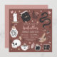Planeje seu contador da sorte, cigano, ou a doce festa de aniversário do Halloween com esses convites de chic assustadores em uma paleta de cores inspirada na natureza do boho. Design apresenta ilustrações de um cobra, espelho, vela, jarro, crânio, cartas de tarô e poção em torno de seus detalhes de celebração do Sweet 16.