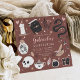 Planeje sua festa de aniversário da fortuna, cigana ou quinceanera com o tema do Halloween com esses convites de chic assustadores em uma paleta de cores inspirada na natureza do boho. Design apresenta ilustrações de um cobra, espelho, vela, jarro, crânio, cartas de tarô e poção em torno de seus detalhes de celebração da quinceanera.