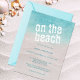 No Convite De Casamento De Aquarelas Tropicais De Praia. Uma simples renderização aquática de uma praia tropical com areia branca-rosada e águas turquesas serve como pano de fundo para este convite de casamento na moda e moderno. A tipografia ousada e angustiada dá ao design um olhar forte. Há muito espaço para adicionar texto personalizado à parte traseira para fornecer qualquer informação adicional necessária aos seus convidados.