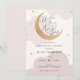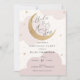 Convite de aniversário com nuvens cor-de-água rosa e estrelas douradas com lua reluzente e roteiro divertido "Sob a Lua e Estrelas!" Personalize com suas informações ou clique em "clique para personalizar mais" para ajustar o tipo de fonte, o tamanho e a cor.