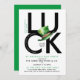Este moderno, minimalista e verde convite para uma Rua. A festa do Dia de Patrick tem um grande roteiro negro, que diz Luck, um chapéu irlandês verde-aquoso e um texto personalizável, tudo num fundo branco. As costas estão com um simples verde brilhante.