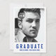 Personalize este legal Convite à Festa de formatura, na moda e moderno, projetado com uma imagem Laurel Wreath e com texto azul em branco. Substitua a imagem modelo por sua e personalize todo o texto na frente e no verso. Para obter melhores resultados, use a imagem de alta resolução. *Crédito da Foto do Modelo: ©campb_LLs