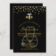 Um convite para uma comemoração da graduação do médico. Projetado com pontos falsos de confete dourado ao longo do topo. Símbolo caducius branco com as letras M D de cada lado. Uma cinza estetoscópio atrás do texto do partido.