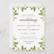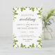 Estes convites para o casamento são decorados com lindas designs verdes por todas as bordas, e um fundo branco limpo. Personalize facilmente o texto com o seu próprio convite de casamento. Aqui está a placa RSVP correspondente: