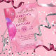 design de na moda e convite de aniversário personalizado moderno com balões, estrelas e faíscas rosas e quentes sobre um fundo abstrato cor-de-rosa.