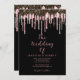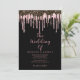 O na moda preto de luxo e o glitter de ouro rosa pingam com um convite de casamento elegante. Esta elegante design de tendências geométricas na moda deslumbrante é perfeita para a garota inteligente e elegante ou qualquer um. Personalize este design com sua própria mensagem e informações personalizadas. Todas as designs são impressas.