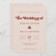 Um tema retro-chic: adote este design de vintage e na moda para tipografia para sua papelaria de casamento, com um tema cor-de-rosa pêssego. Fácil de misturar e combinar com nossa papelaria semelhante disponível em laranja queimada, teracota e açúcar marrom. Cores de texto e planos de fundo totalmente personalizáveis.