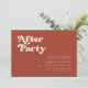 A festa nunca acaba! Organize seu casamento após a festa com estes convites modernos. Um tema retro-chic: adote este design tipográfico ligeiramente vintage e na moda para a sua papelaria de casamento, com um tema cor-de-rosa, laranja queimado, terracota, açúcar castanho e pêssego. Texto, cores e fundo totalmente personalizáveis.