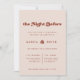 Na noite anterior... Certifique-se de que tudo é perfeito para o grande dia. Um tema retro-chic: adote este design de vintage e na moda para tipografia para sua papelaria de casamento, com um tema cor-de-rosa pêssego. Fácil de misturar e combinar com nossa papelaria semelhante disponível em laranja queimada, teracota e açúcar marrom. Cores de texto e planos de fundo totalmente personalizáveis.