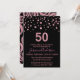 Belo Rosa Dourado Faux Foil 50º Convite de aniversário. Design de recursos do confetti rosa-gold e do script Trendy 50 na frente e do lindo padrão de rosa floral no verso.