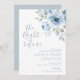 convite para janto de ensaio simples de escrita floral azul empoeirado. As cores de texto e cinza podem ser editadas.