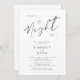 O moderno e elegante minimalista preto limpo e branco "a noite anterior", enquanto a escrita química ensaia modelo de convite jante com um roteiro de caligrafia na moda. ++++++++++++ Fácil de personalizar com seus detalhes! O convite é adequado para comemorações do ensaio de casamento. +++++++++++++++++++ Por favor, note que as cores de fundo e de tipografia podem ser alteradas para corresponder ao seu esquema de cor de casamento.