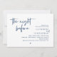 Anuncie a sua alegria para sempre em estilo com o nosso moderno tema design (A Noite Antes) cartão de convite para comemorações de casamento. É ideal para casais que decidiram celebrar a noite antes do seu grande dia. Com seu design sofisticado, mas lúdico, este convite certamente define o tom de um evento inesquecível. A carta de convite apresenta o moderno design de roteiro romântico, adicionando um toque de elegância do eterno à sua celebração. Projetado por TeeshaDerrick