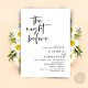 Anuncie sua alegria para sempre em estilo com o nosso moderno design do ensaio de celebração do ensaio de noivado, a preto e branco (The Night Before). É ideal para casais que decidiram celebrar a noite antes do seu grande dia. Com seu design sofisticado, mas lúdico, este convite certamente define o tom de um evento inesquecível. A carta de convite apresenta o moderno design de roteiro romântico, adicionando um toque de elegância do eterno à sua celebração.