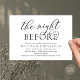 Anuncie sua alegria para sempre em estilo com o nosso moderno design do ensaio de celebração do ensaio de casamento, branco e preto (The Night Before). É ideal para casais que decidiram celebrar a noite antes do seu grande dia. Com seu design sofisticado, mas lúdico, este convite certamente define o tom de um evento inesquecível. A carta de convite apresenta o moderno design de roteiro romântico, adicionando um toque de elegância do eterno à sua celebração. Projetado por TeeshaDerrick