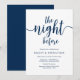 Na noite anterior, design de guião Marinho Rustic Blue. Planejar uma celebração do Janto de ensaio do casamento com a futura noiva e futura noiva, antes do seu grande dia? Convide os hóspedes com este Cartão de Convite para Janto de Ensaio de Casamento com o guião rústico perfeito. Adicione os detalhes do janto de ensaio em letra/letra correspondente. #TeeshaDerrick