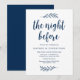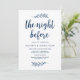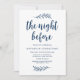 Na noite anterior, design de guião Marinho Rustic Blue. Planejar uma celebração do Janto de ensaio do casamento com a futura noiva e futura noiva, antes do seu grande dia? Convide os hóspedes com este Cartão de Convite para Janto de Ensaio de Casamento com o guião rústico perfeito. Adicione os detalhes do janto de ensaio em letra/letra correspondente. #TeeshaDerrick