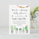 Este convite divertido apresenta suculentos de aquarela com sotaque dourado e sinalizadores de fiesta colorida.