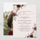 Crie o convite perfeito para um casamento casual, ou celebração de recepção após uma fuga romântica, com este design moderno e trendy de flores em aquarela rosa e vermelho burgundy, apresentando tipografia de letra manuscrita. O verso do convite apresenta sua foto de noivado favorita. Entre em contato com o designer para produtos correspondentes. Muito obrigada por apoiar nosso pequeno negócio, realmente apreciamos!