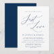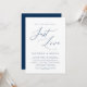 Este é o convite de casamento Nada de Fantasia, Apenas Amor, em fonte Azul Marinho. Perfeito para convidar familiares e amigos para celebrar esta ocasião importante.