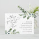 Lindo Design Moderno Romântico, em tema de aquarela de folhas de eucalipto, Anúncio de Casamento, Cartão de Convite (Nada de Fantasia, Apenas Amor). Isto é perfeito para o seu jantar de recepção e festa de celebração pós-casamento. Adicione os detalhes da celebração do brunch / jantar de casamento.