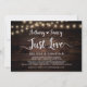 Lindo Anúncio de Casamento Nada de Fantasia, Apenas Amor, Elopamento com Luzes de Corda, cartão de convite, em Madeira Rústica de Fazenda. Isto é perfeito para a recepção do seu casamento e festa de celebração pós-casamento. Adicione seus detalhes em fonte / letra correspondente. #TeeshaDerrick