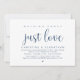 Cartão de convite de casamento com tema azul marinho moderno (Nada de Fantasia, Apenas Amor). É perfeito para o seu casamento / recepção de celebração pós-casamento. Adicione seus detalhes em fonte / letra preta correspondente.