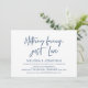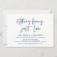 Nada de luxo, apenas amor, cartão de convite de casamento clandestino e celebração de festa, em belo script casual, tema azul-marinho. Isso é perfeito para o seu casamento e festa de celebração pós-casamento.