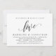 Anuncie seu para sempre feliz com estilo com nosso cartão de convite de casamento com design moderno de escrita para festa de casamento pós-casamento (Nada sofisticado, apenas amor) (tema preto e branco). Nosso cartão de convite de jantar e celebração de dança para o Para Sempre Feliz é ideal para casais que decidiram se casar em segredo e desejam realizar uma festa para celebrar sua união. Com um design sofisticado e divertido, este convite certamente estabelecerá o tom para um evento inesquecível. O cartão de convite apresenta um design minimalista, adicionando um toque de elegância atemporal à sua celebração. Projetado por TeeshaDerrick