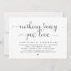 Cartão de convite de casamento com tema de letra preta moderna (Nada de Fantasia Só Amor). É perfeito para a recepção do seu casamento / festa de celebração pós-casamento. Adicione seus detalhes na fonte / letra preta correspondente.