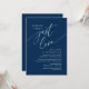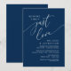 Lindo Moderno Minimalista Elegante, fonte Script Azul Naval, Anúncio de Casamento às Escapadinhas, Celebração de Jantar e Festa, Cartão de Convite (Nada de Fantasias, Apenas Amor). Isto é perfeito para a recepção do seu casamento e festa de celebração pós-casamento. Adicione seus detalhes na fonte / letra correspondente.