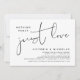 Este é o convite para a festa de casamento às escuras, com design minimalista / letra cursiva preta minimalista (Nada sofisticado, apenas amor).