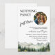 Um convite elegante para o casamento com montanhas de aquarelas e pinheiros que você pode personalizar com seus detalhes.