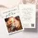 Convite para casamento de creme leve elegante. A frente mostra sua foto, "Nada de Rico Apenas Amor" em uma mistura de uma simples tipografia e um roteiro de na moda com supressões e seus primeiros nomes e data de casamento juntos com um coração. No verso, personalize seu convite em tipografia elegante e insira seu endereço no site do casamento para criar um código QR para seus convidados digitalizarem para RSVP on-line e para obter detalhes adicionais de casamento, como acomodações e instruções.