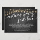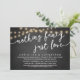 Anuncie a sua alegria para sempre em estilo (Nada de Rico, Apenas Amor) com o nosso moderno fundo de madeira preto-preto, cordas de casaco luzes design de elopeio de casamento. O nosso cartão de convite à celebração de festas "Feliz Nunca Depois" é ideal para os casais que decidiram fugir e querem acolher um partido para celebrar o seu sindicato. Com seu design sofisticado, mas lúdico, este convite certamente define o tom de um evento inesquecível. O cartão de convite apresenta um esquema de design elegante rústico minimalista, acrescentando um toque de elegância eterno à sua celebração. Projetado por TeeshaDerrick